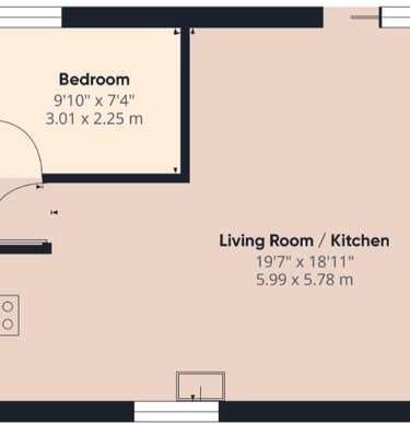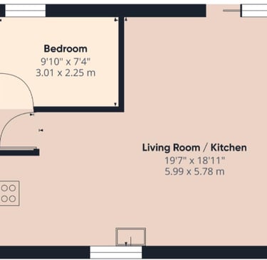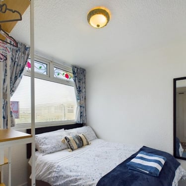 The chalet has two bedrooms — one comfortable double bedroom and one standard size bunk bedroom — ideal for couples, small families, or friends.
